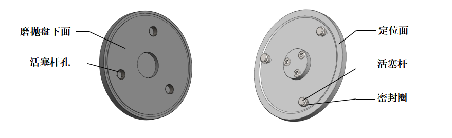 01 磨拋盤可快速更換,兩手拿住磨拋盤輕輕上提即可取下來;將另一個磨拋盤兩手拿平,目測磨拋盤的三個活塞桿孔與三個活塞桿基本對應時落下,感覺其中一個孔對應時,輕微擺動磨拋盤使另兩個也對應后將盤持平插入,再用手控壓一下,使磨拋盤下面與磨拋座的定位面完全接觸。