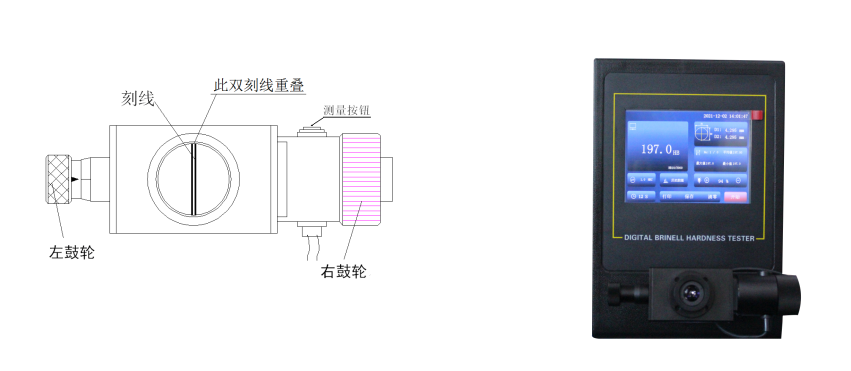 01  各項操作過程和試驗結果的數據均可在LCD大屏幕上顯示。操作時只要測量壓痕按目鏡按鈕,即可自動計算出硬度值并顯示在屏幕上。